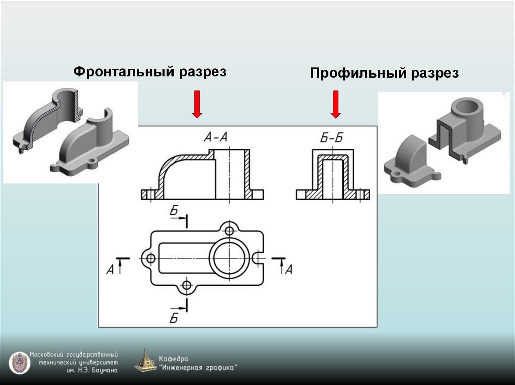 Фронтальный разрезПрофильный разрез