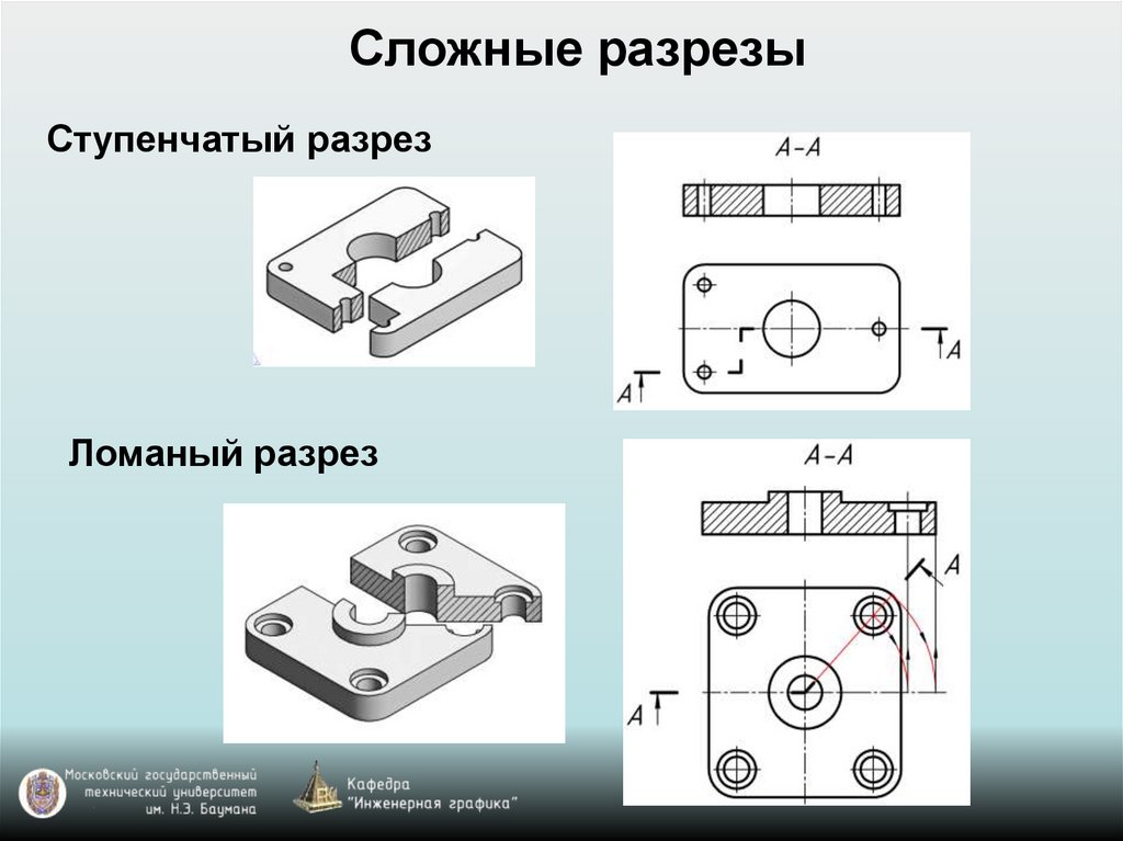 секущей плоскости) и сложные (при нескольких секущих плоскостях).