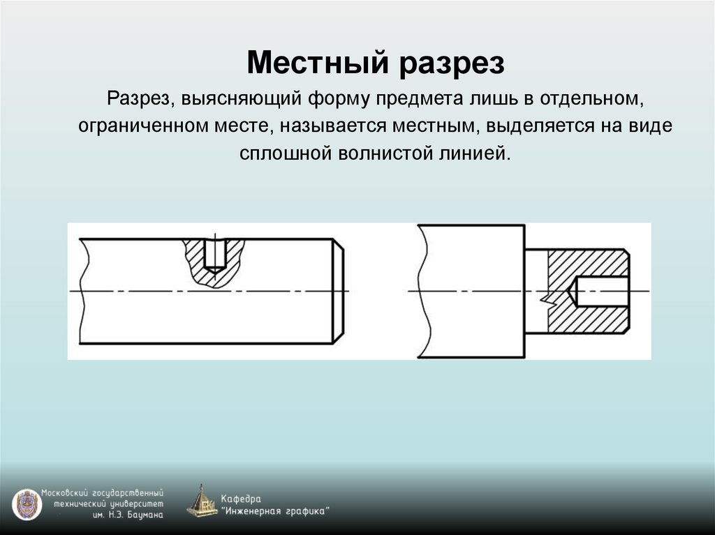 Допускается соединять часть вида и часть разреза,разделяя их сплошной волнистой линией.