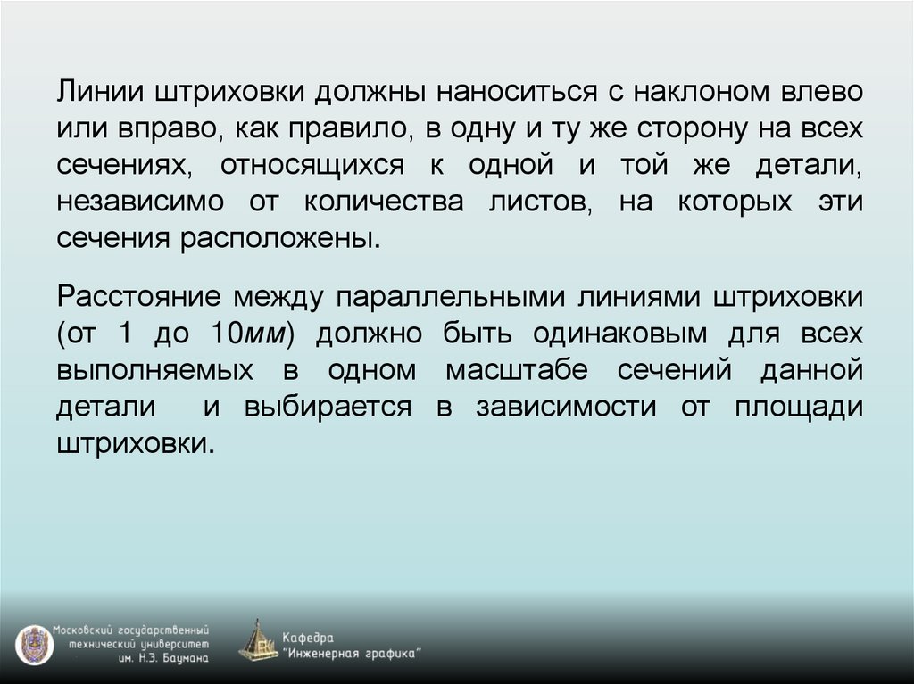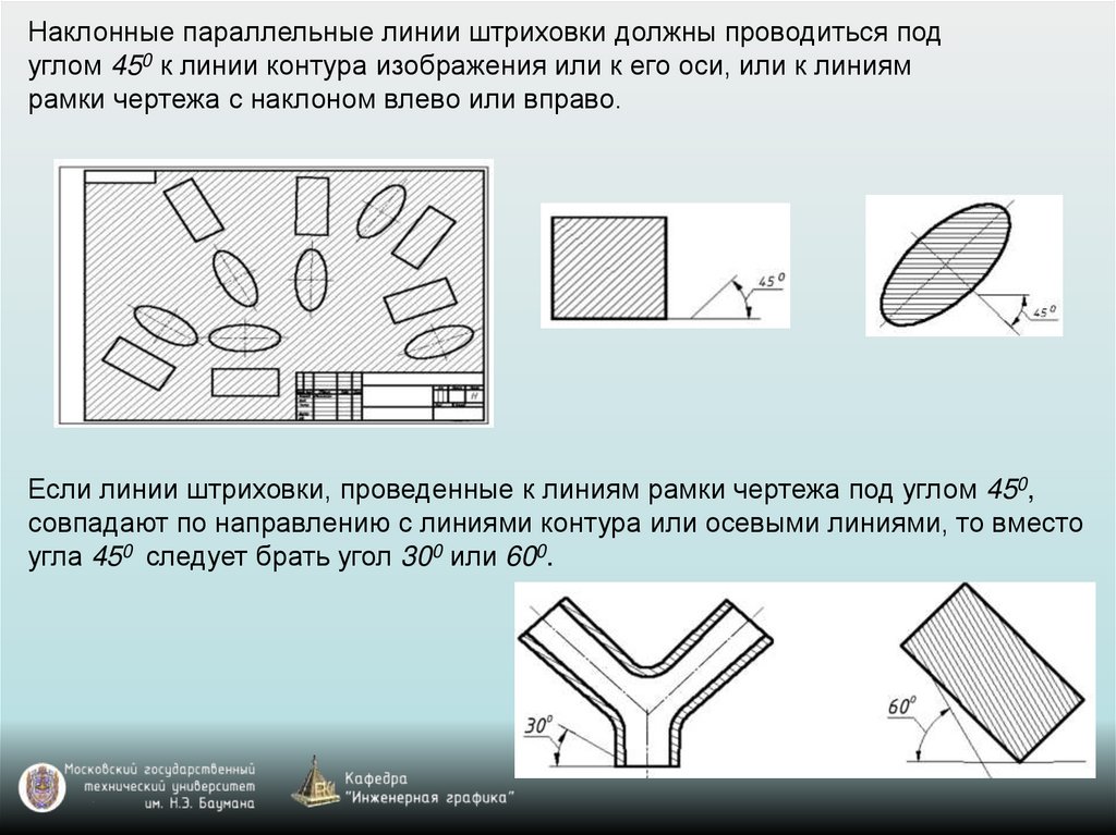 Линии штриховки должны наноситься с наклоном влевоили вправо, как правило, в одну и ту же сторону на всех
