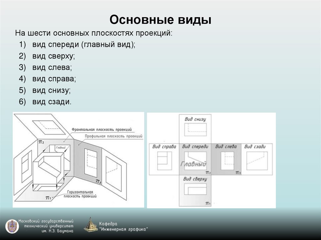 Основные видыНа шести основных плоскостях проекций: