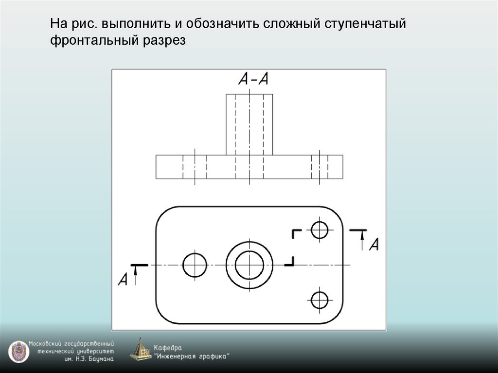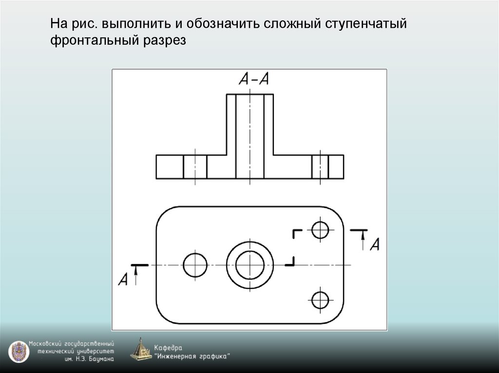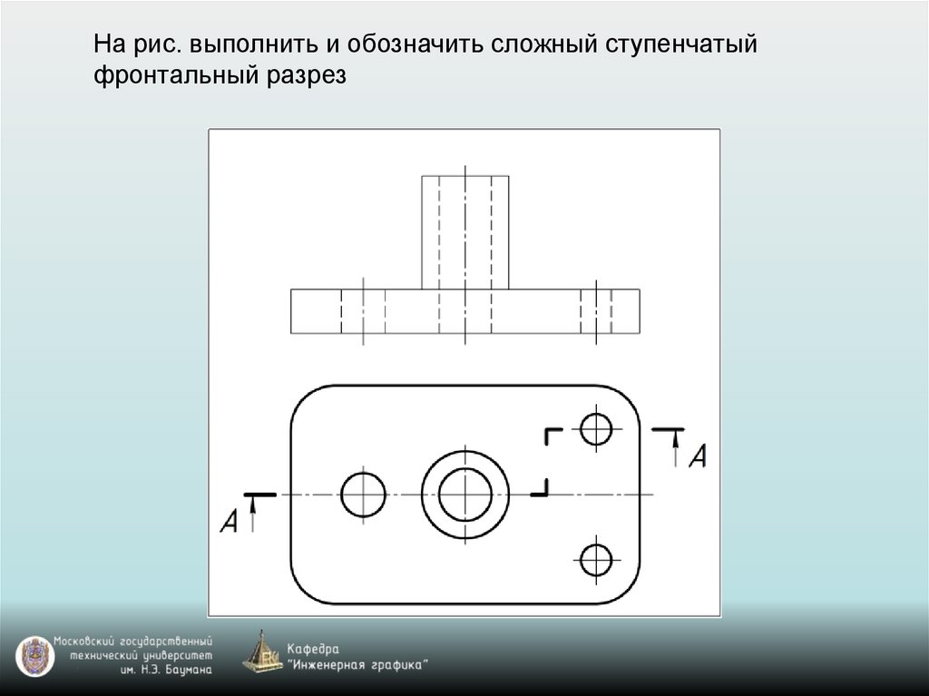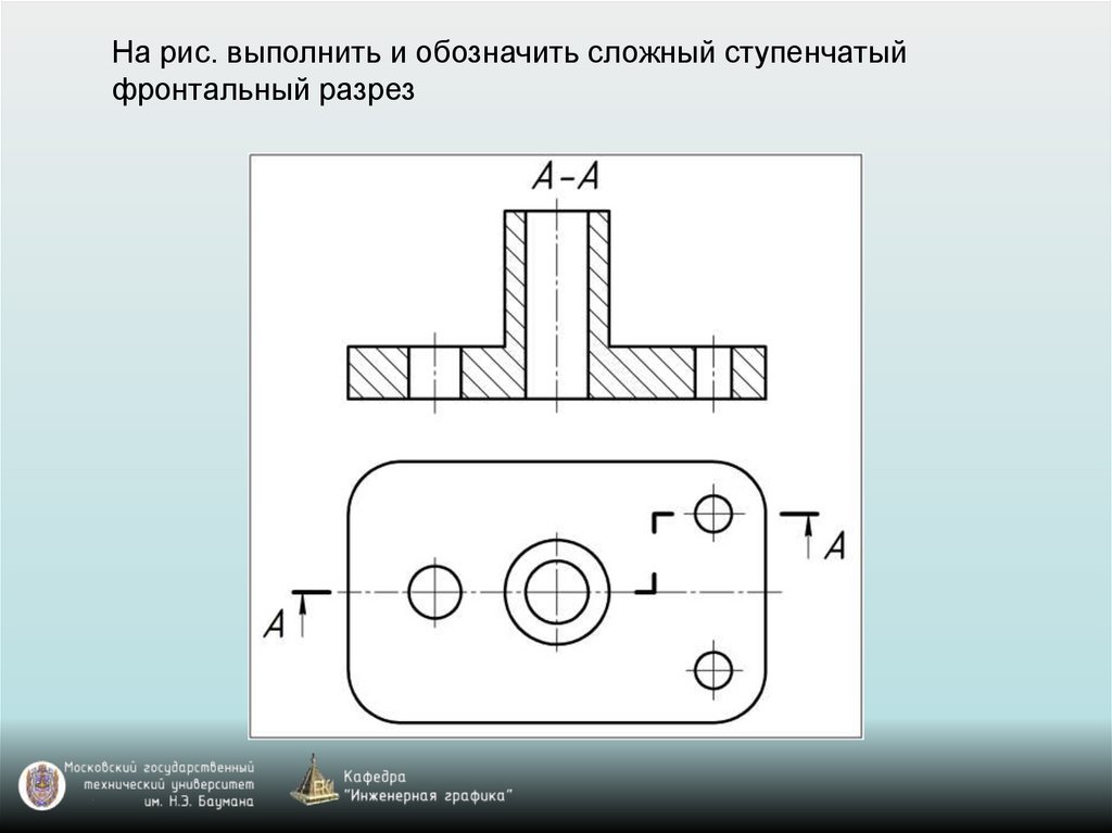 На рис. выполнить и обозначить сложный ступенчатыйфронтальный разрез