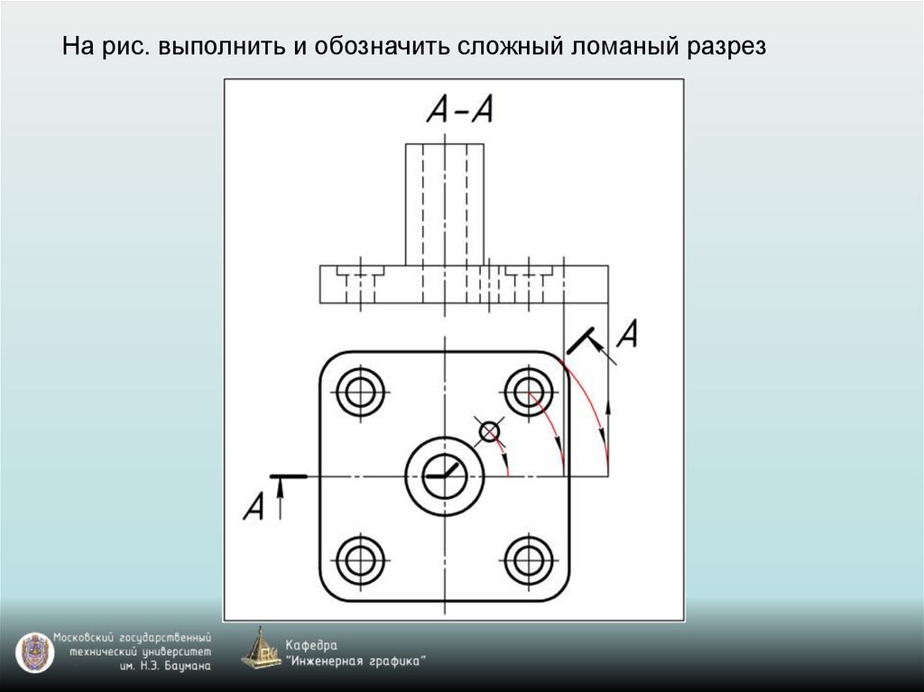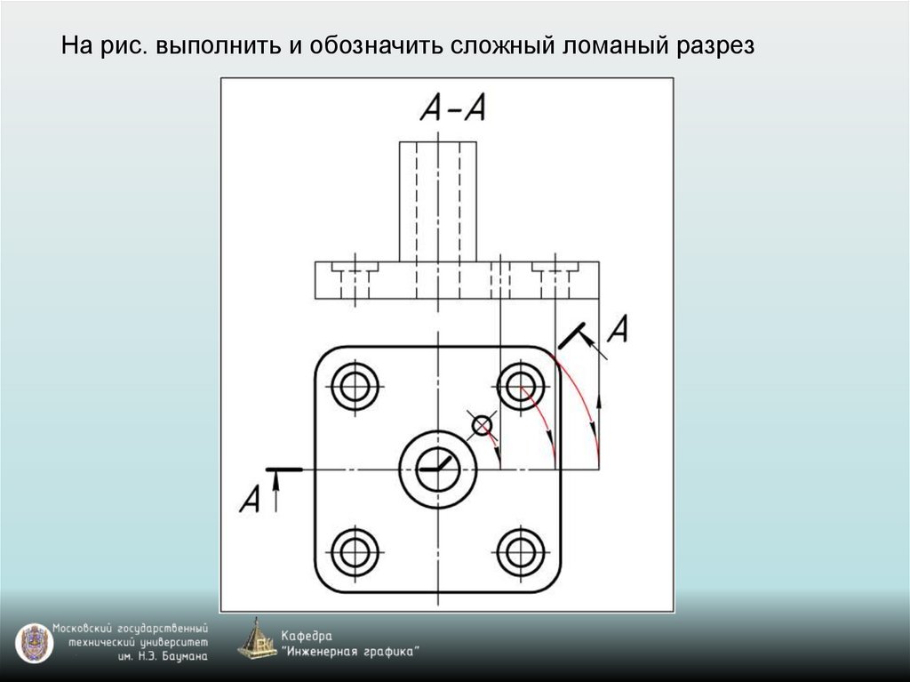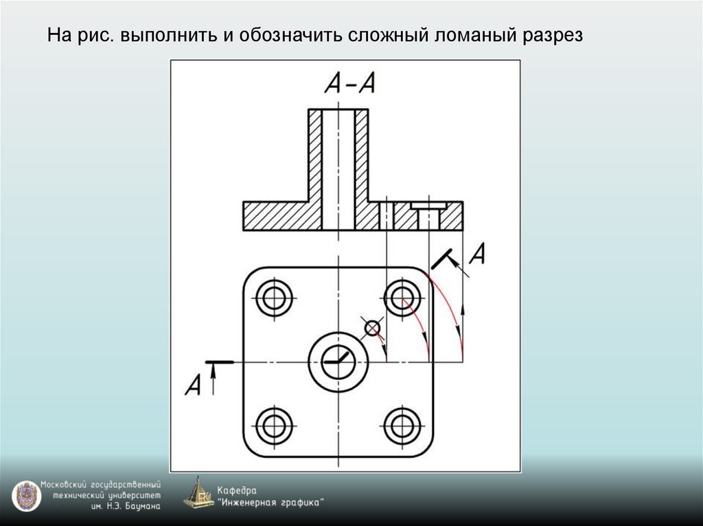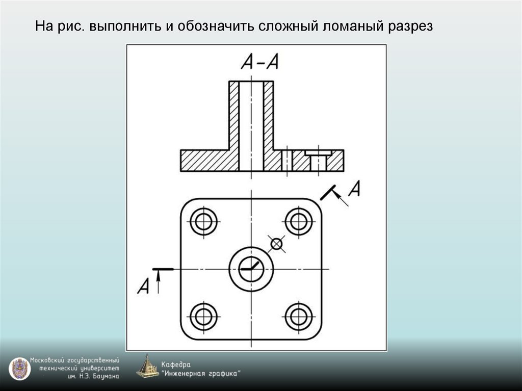 На рис. выполнить и обозначить сложный ломаный разрез46.