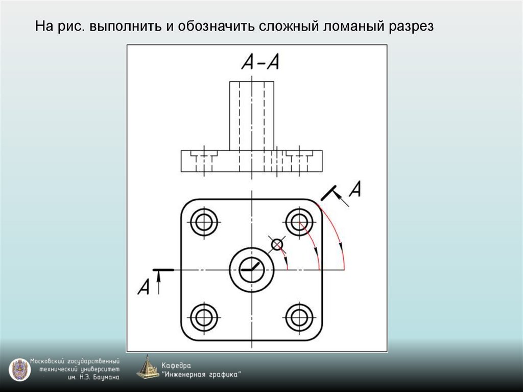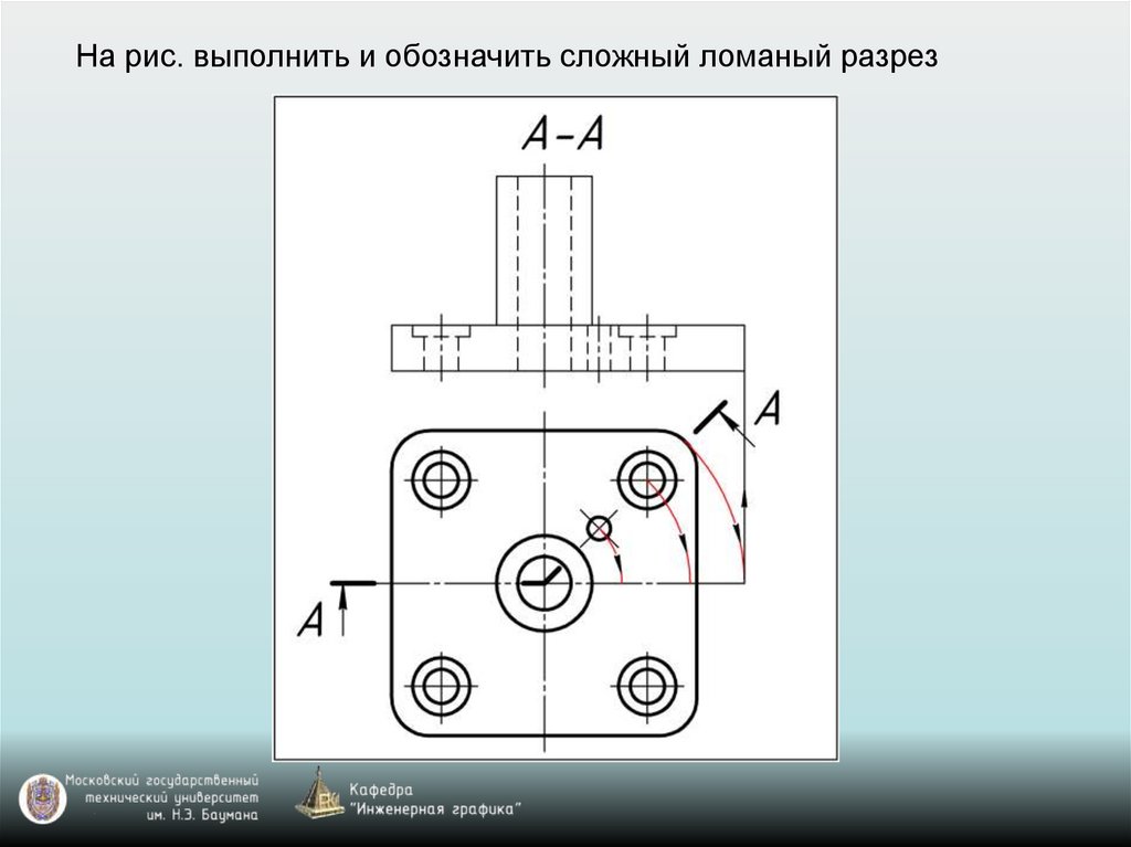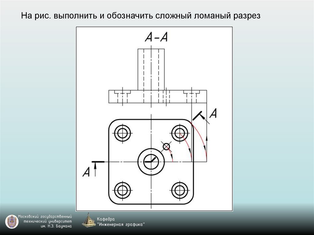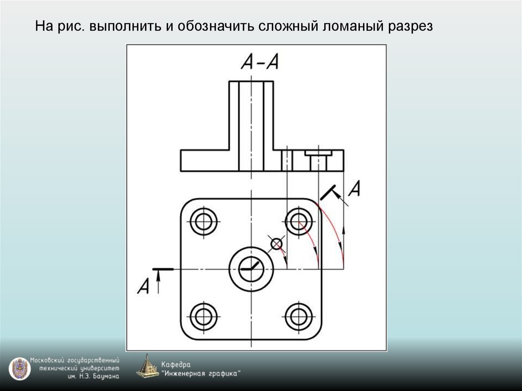 На рис. выполнить и обозначить сложный ломаный разрез46.