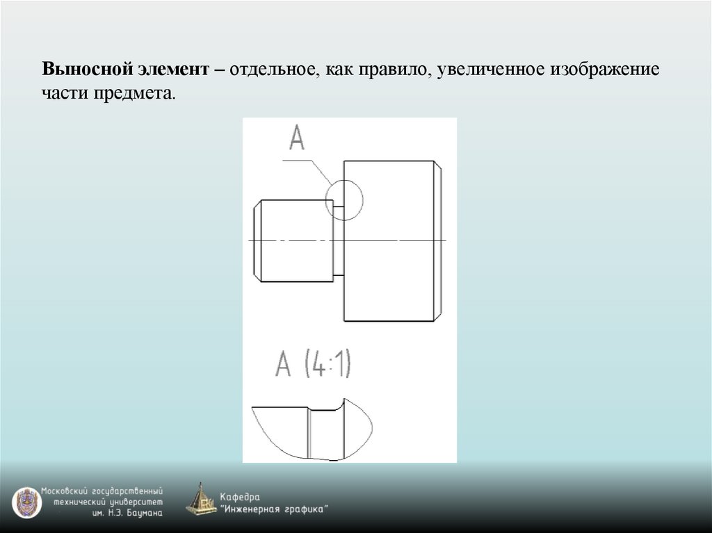 Выносной элемент – отдельное, как правило, увеличенное изображениечасти предмета.