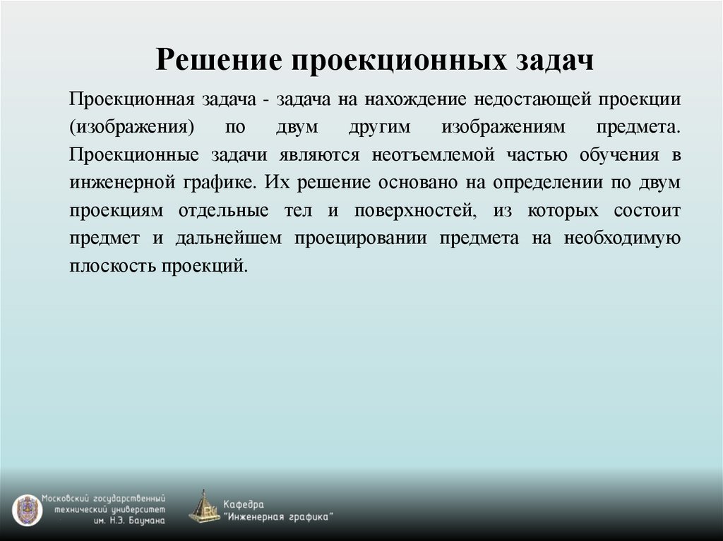 Решение проекционных задачПроекционная задача - задача на нахождение недостающей проекции