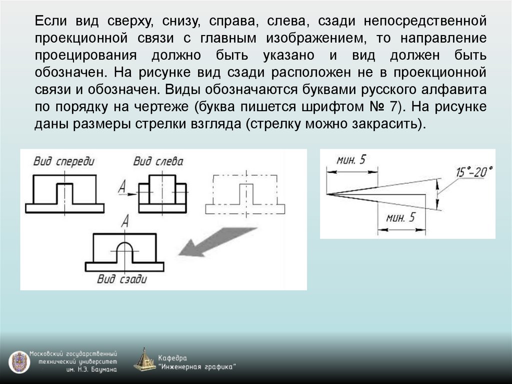 Если вид сверху, снизу, справа, слева, сзади непосредственнойпроекционной связи с главным изображением, то направление