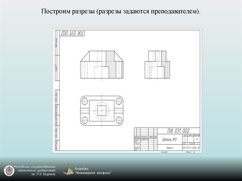 Построим разрезы (разрезы задаются преподавателем).66.