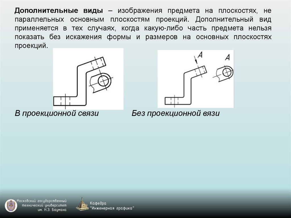 Дополнительные виды – изображения предмета на плоскостях, непараллельных основным плоскостям проекций. Дополнительный вид