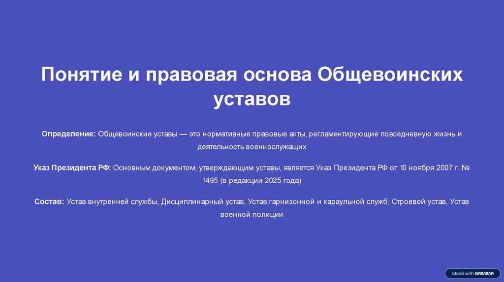 Понятие и правовая основа Общевоинскихуставов