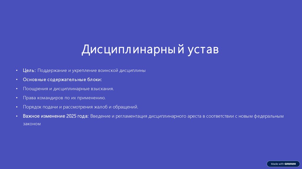 Дисципл инарны й уставЦел ь : Поддержание и укрепление воинской дисциплины