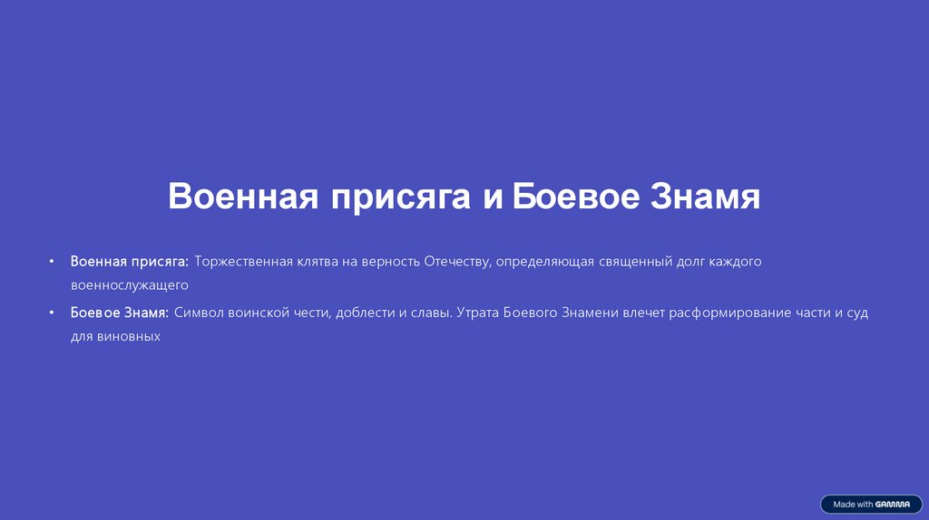 Военная присяга и Боевое ЗнамяВоенная присяга: Торжественная клятва на верность Отечеству, определяющая священный долг каждого