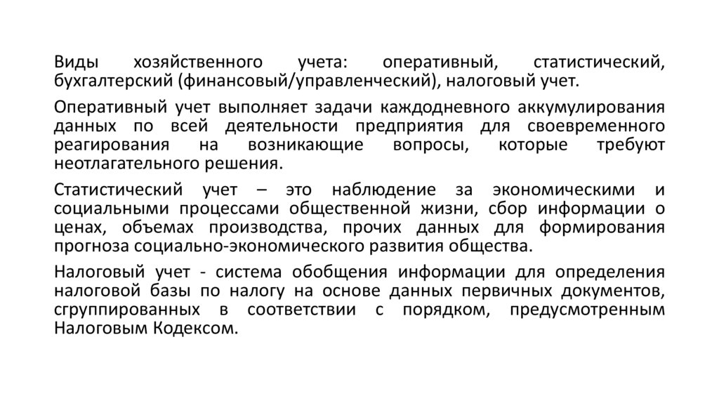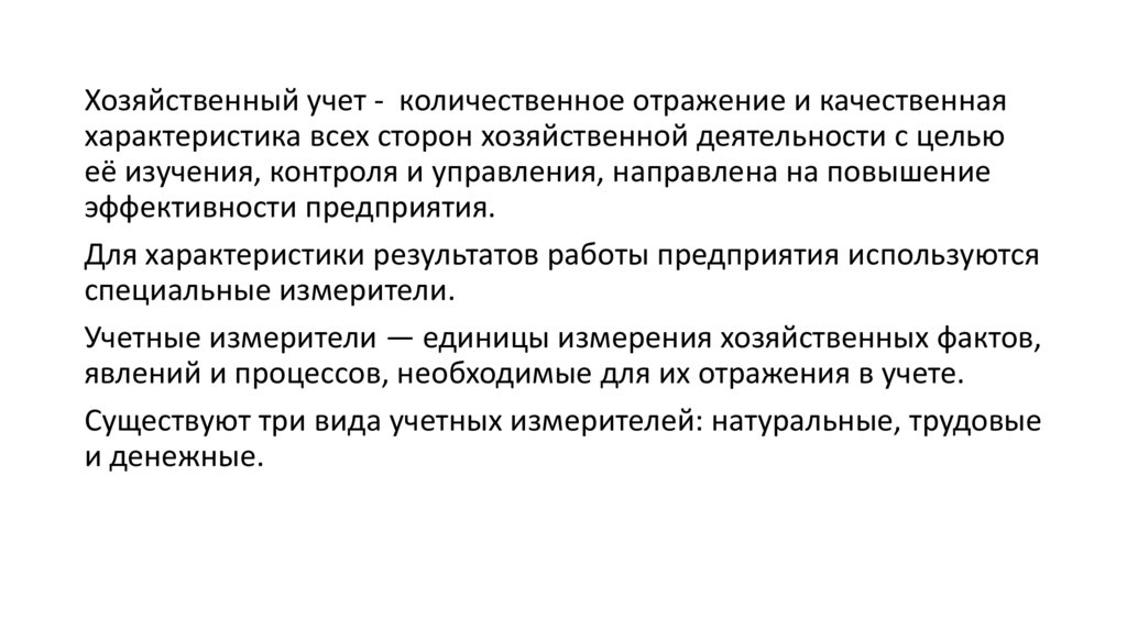 Хозяйственный учет - количественное отражение и качественнаяхарактеристика всех сторон хозяйственной деятельности с целью