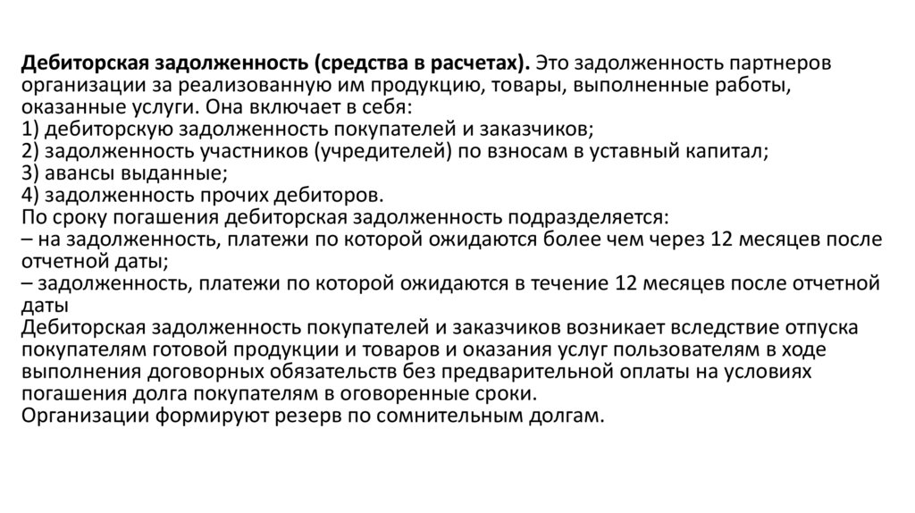 сомнительным долгам, под обесценение вложений в ценные бумаги и др.), а также резервы, создаваемые в связи