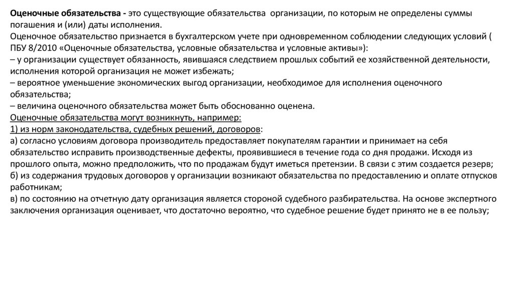 приведет к оттоку из организации ресурсов, содержащих экономические выгод;