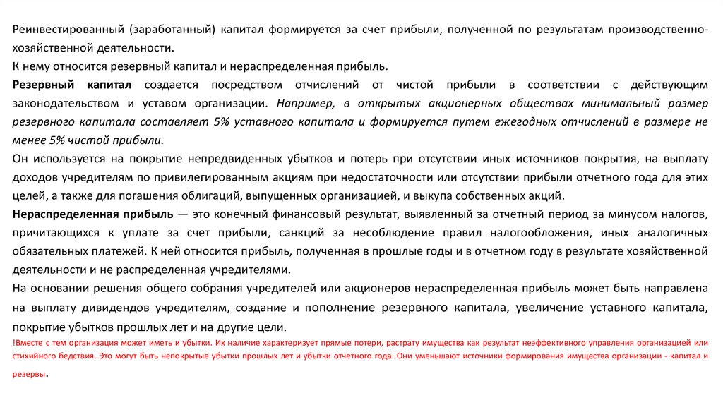 стихийного бедствия. Это могут быть непокрытые убытки прошлых лет и убытки отчетного года. Они уменьшают источники формирования имущества организации - капитал и