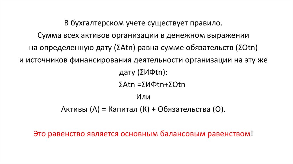 на определенную дату (ΣАtn) равна сумме обязательств (ΣОtn)