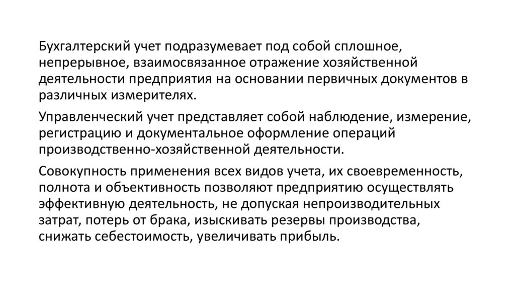 Бухгалтерский учет подразумевает под собой сплошное,непрерывное, взаимосвязанное отражение хозяйственной