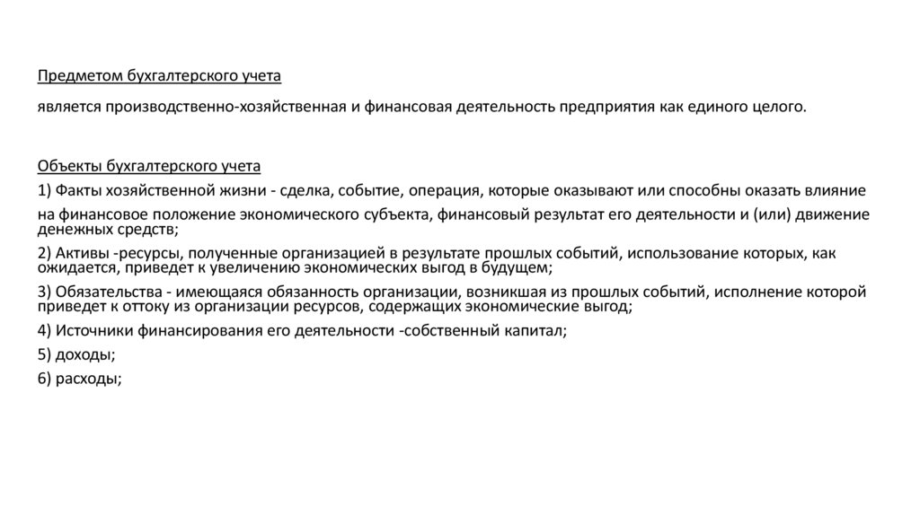 Предметом бухгалтерского учетаявляется производственно-хозяйственная и финансовая деятельность предприятия как единого целого.