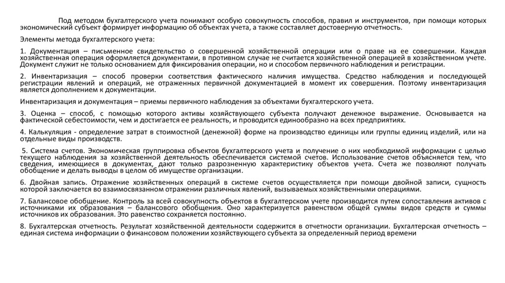 Под методом бухгалтерского учета понимают особую совокупность способов, правил и инструментов, при помощи которыхэкономический субъект формирует информацию об объектах учета, а также составляет достоверную отчетность.