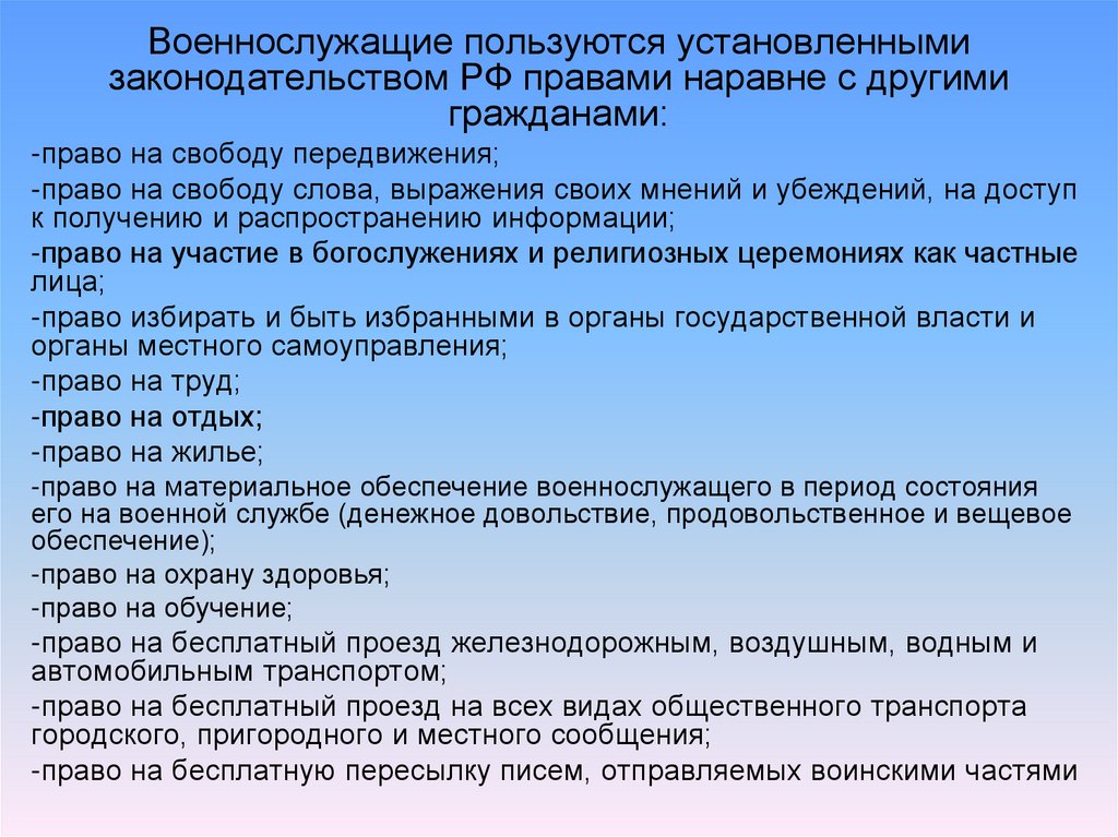 Военнослужащие пользуются установленнымизаконодательством РФ правами наравне с другими