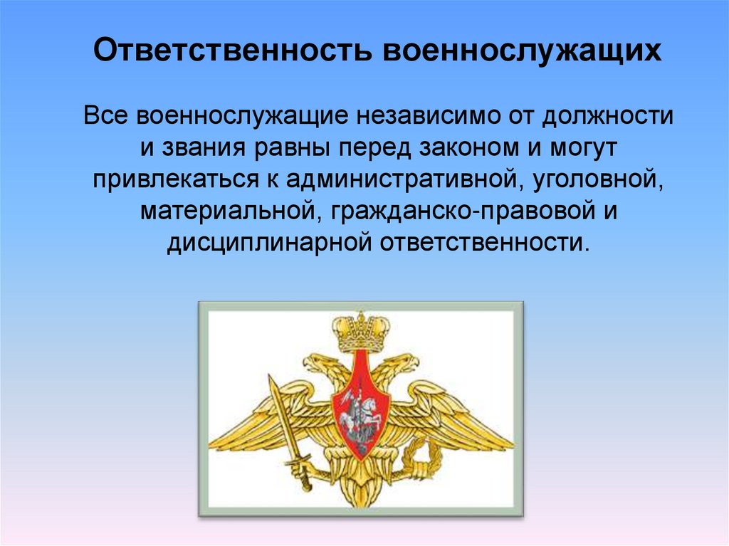 Ответственность военнослужащихВсе военнослужащие независимо от должности