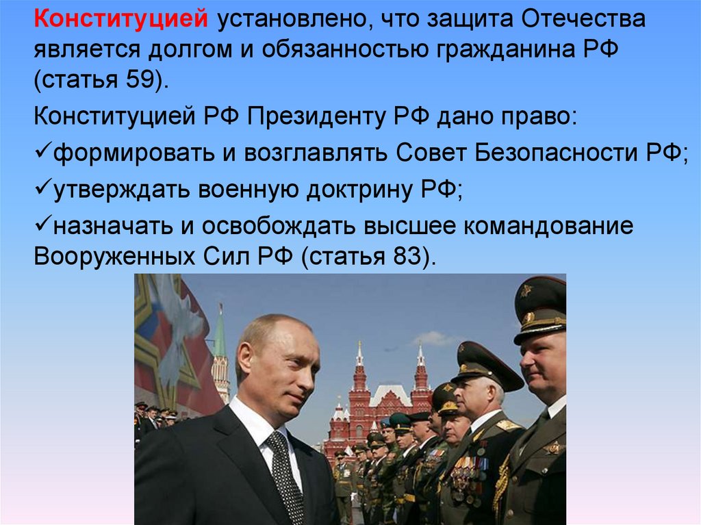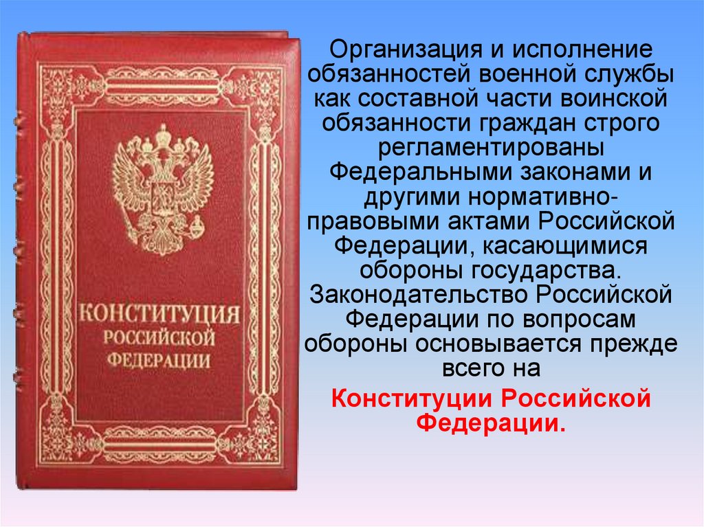 Конституцией установлено, что защита Отечестваявляется долгом и обязанностью гражданина РФ