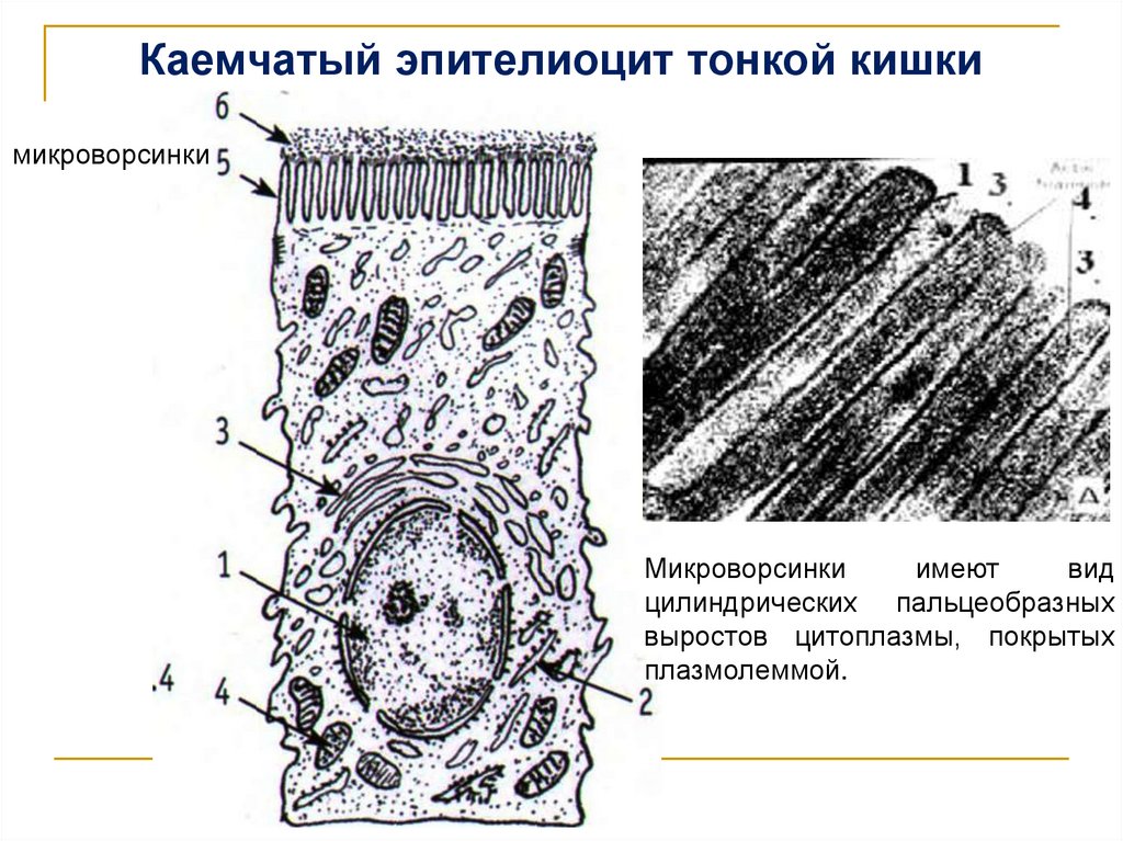 Каемчатый эпителиоцит тонкой кишкимикроворсинки