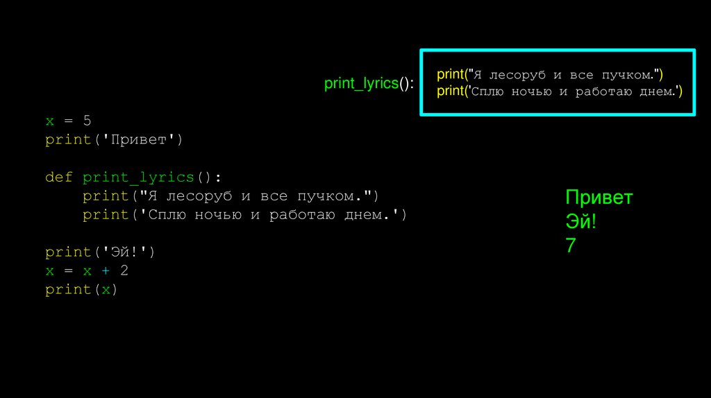 • Если функция не возвращает значение, мы называем ее«пустой» функцией