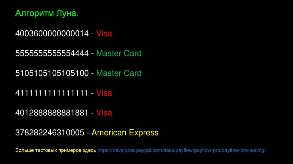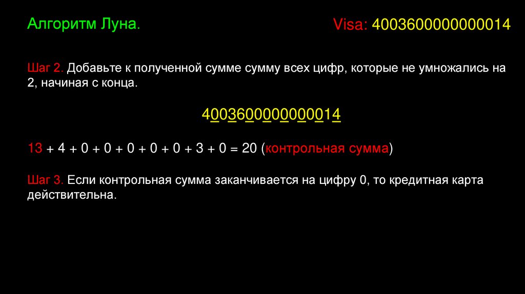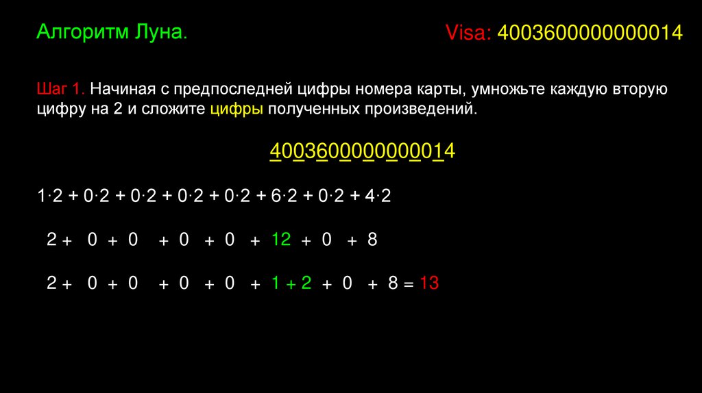 Алгоритм Луна.4003600000000014 - Visa