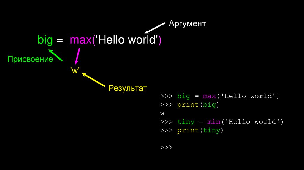 Аргументbig = max('Hello world')