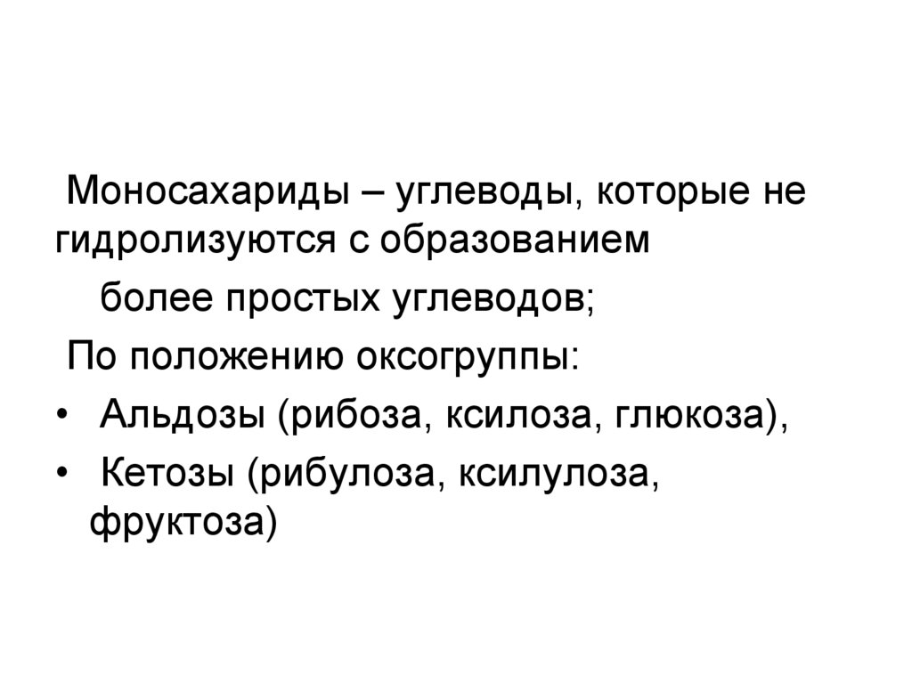 Моносахариды – углеводы, которые негидролизуются с образованием