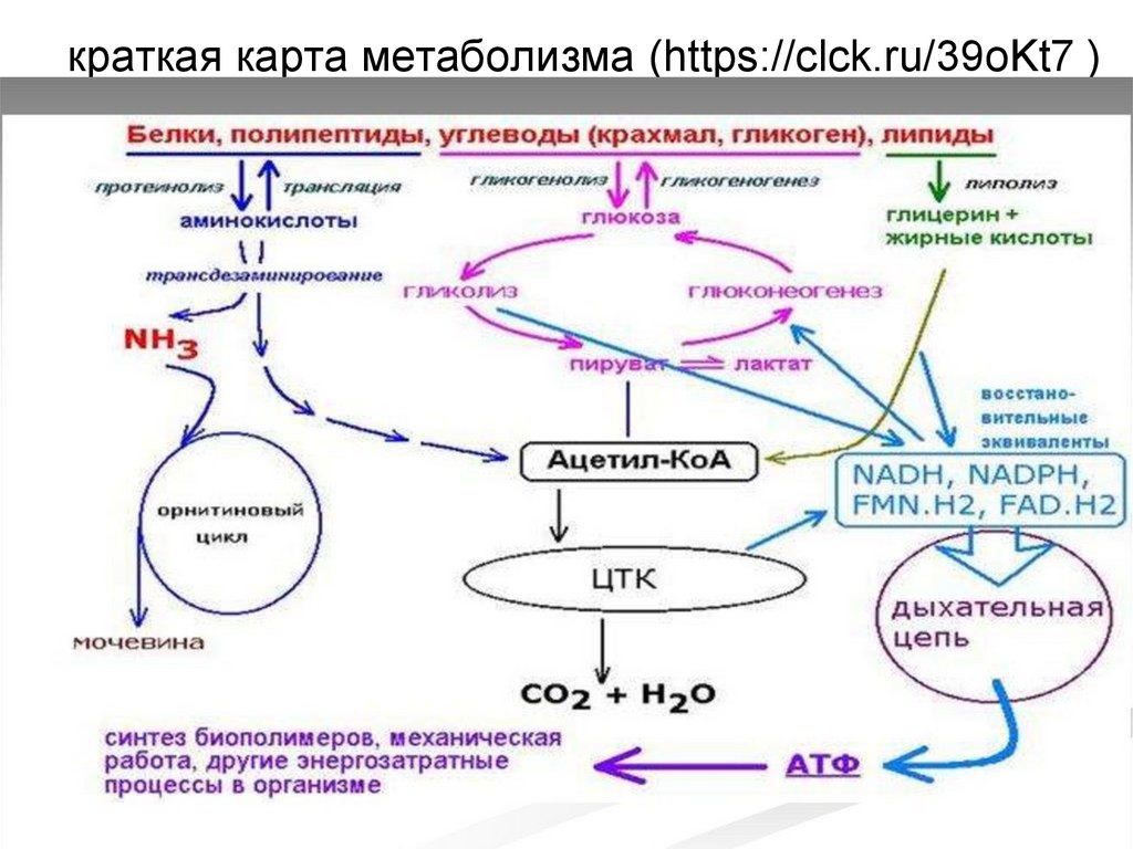 краткая карта метаболизма (https://clck.ru/39oKt7 )5.