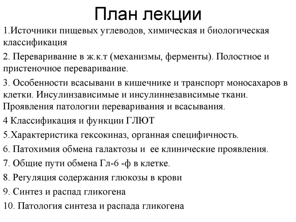 План лекции1.Источники пищевых углеводов, химическая и биологическая