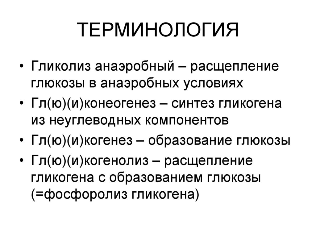 ТЕРМИНОЛОГИЯ• Гликолиз анаэробный – расщепление