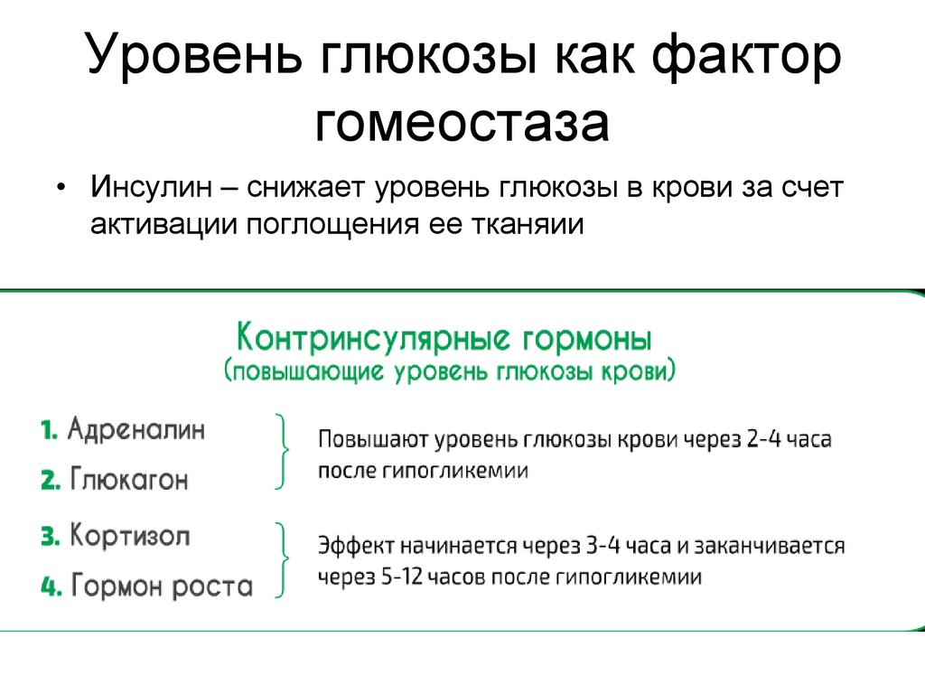 • Инсулин – снижает уровень глюкозы в крови за счет