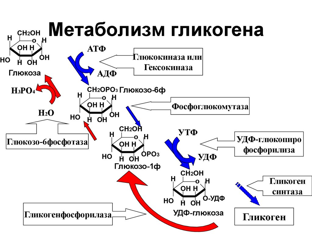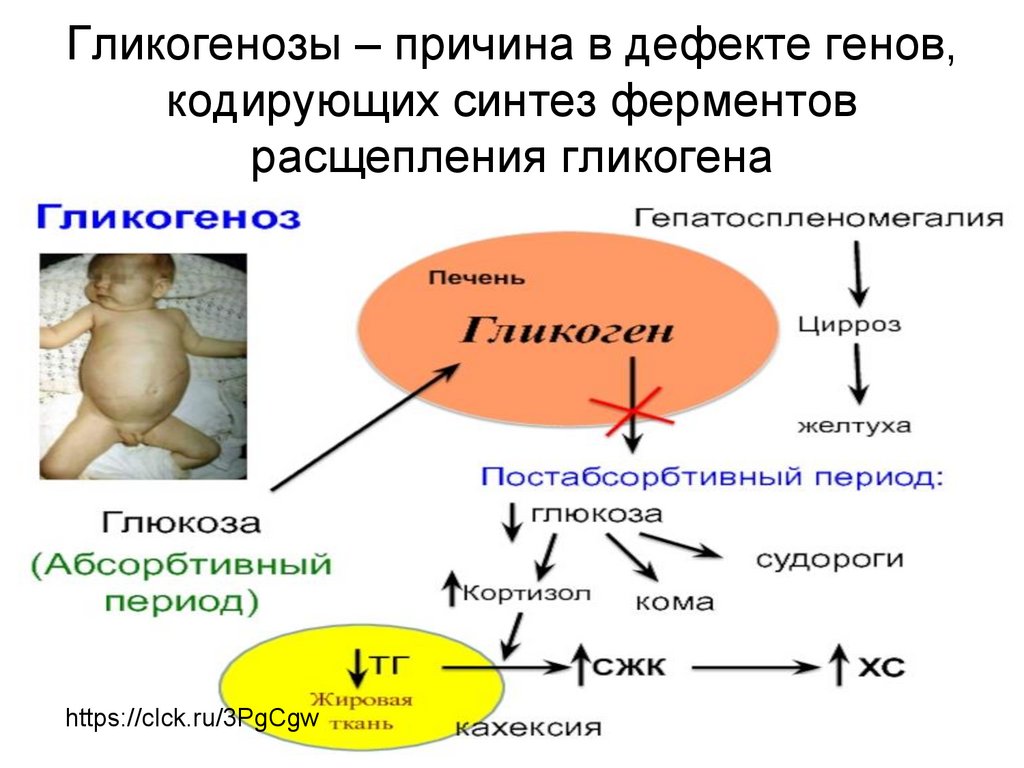 Гликогенозы – причина в дефекте генов,кодирующих синтез ферментов