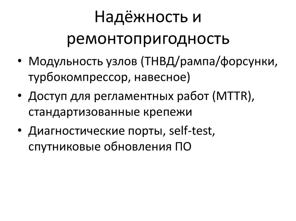 • Модульность узлов (ТНВД/рампа/форсунки,