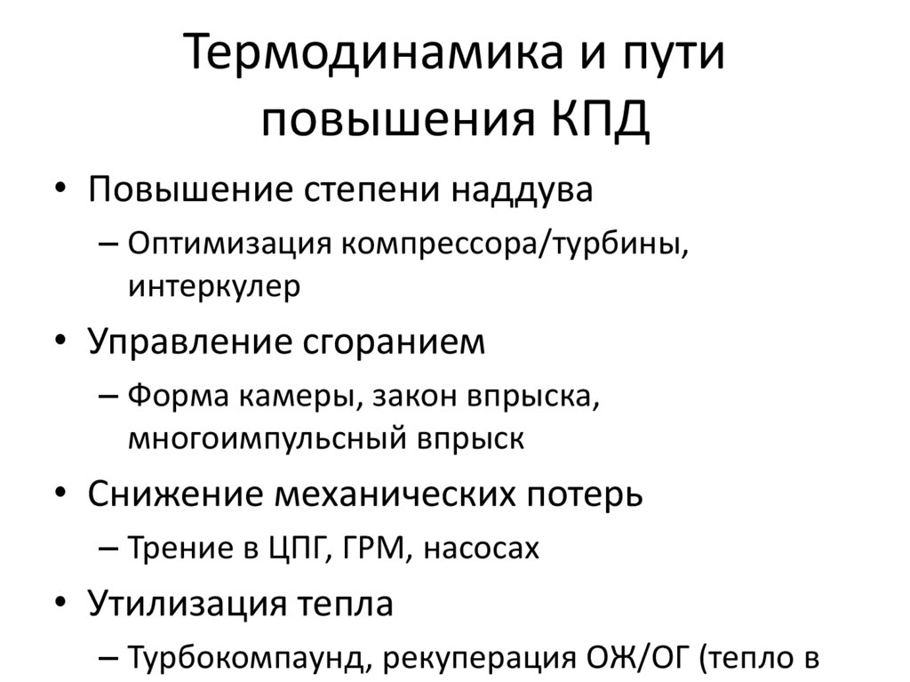 – Турбокомпаунд, рекуперация ОЖ/ОГ (тепло в
