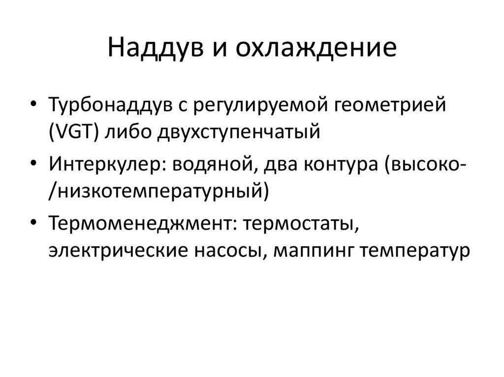 Наддув и охлаждение• Турбонаддув с регулируемой геометрией