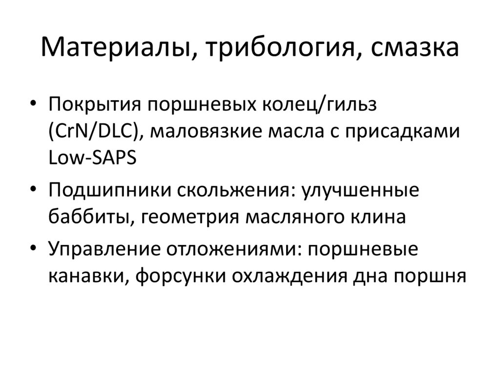 Материалы, трибология, смазка• Покрытия поршневых колец/гильз