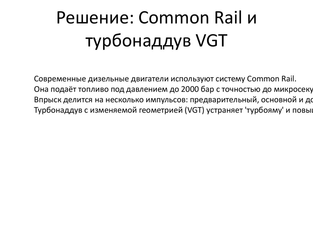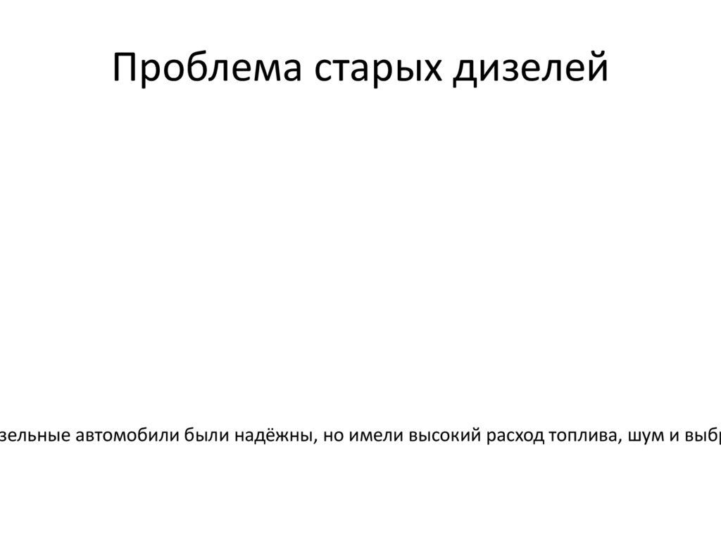 Проблема старых дизелейизельные автомобили были надёжны, но имели высокий расход топлива, шум и выбр
