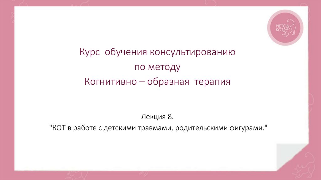 1. Курс обучения консультированию по методу Когнитивно - образная терапия Лекция 1. «Теоретические основы метода»