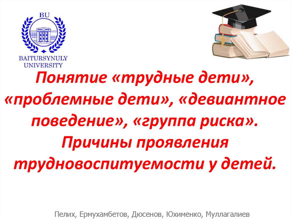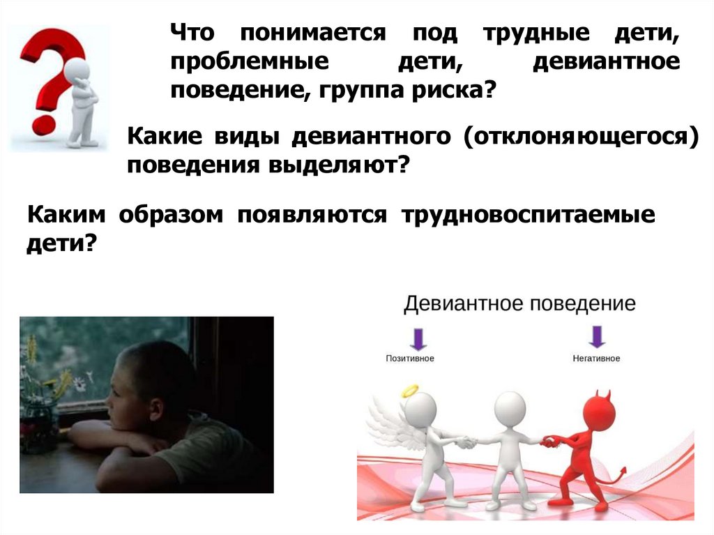 1. Понятие «трудные дети», «проблемные дети», «девиантное поведение», «группа риска». Причины проявления трудновоспитуемости у