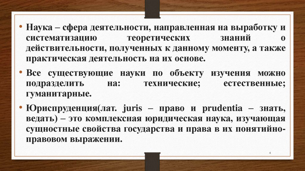 • Наука – сфера деятельности, направленная на выработку исистематизацию