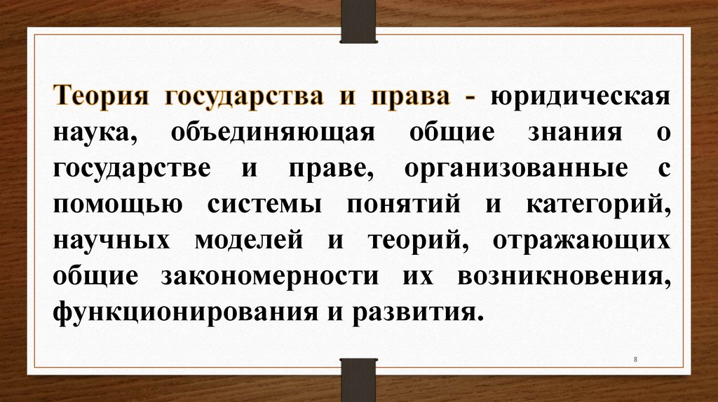 • Теория государства и права изучает не случайные, азакономерные процессы тех или иных государственноправовых явлений.