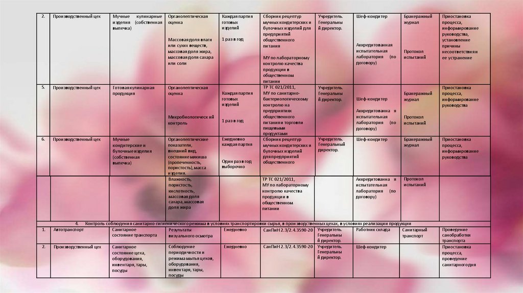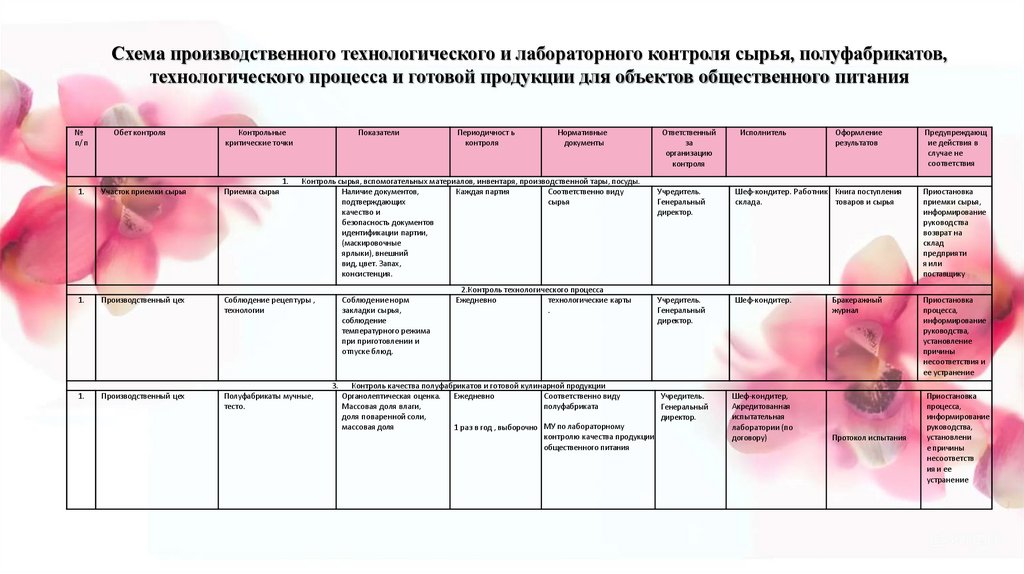 • Производственный контроль сырья, готовой продукции и полуфабрикатов;