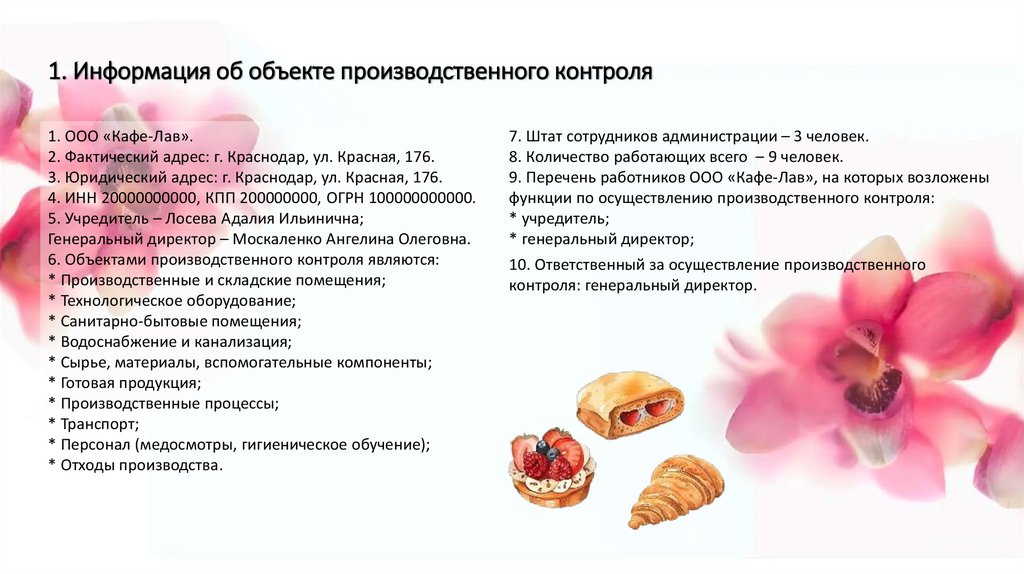 1. Информация об объекте производственного контроля1. ООО «Кафе-Лав».