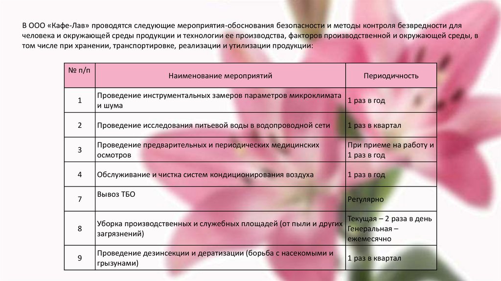 (профилактических) мероприятий вООО «Кафе-лав»