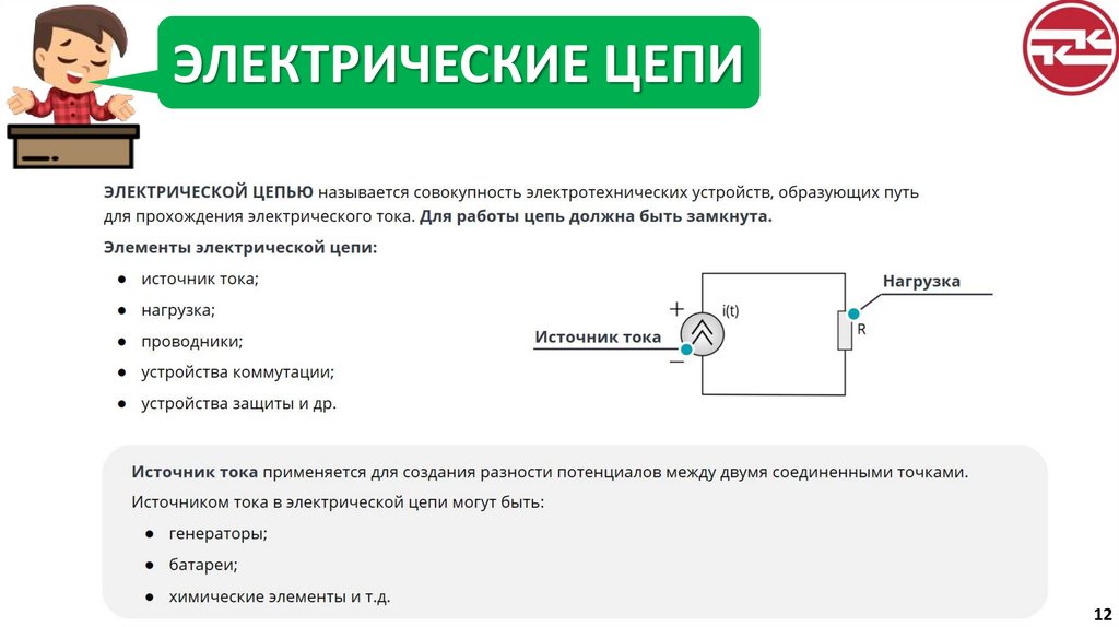 ЭЛЕКТРИЧЕСКИЕ ЦЕПИ (слайд 12)
